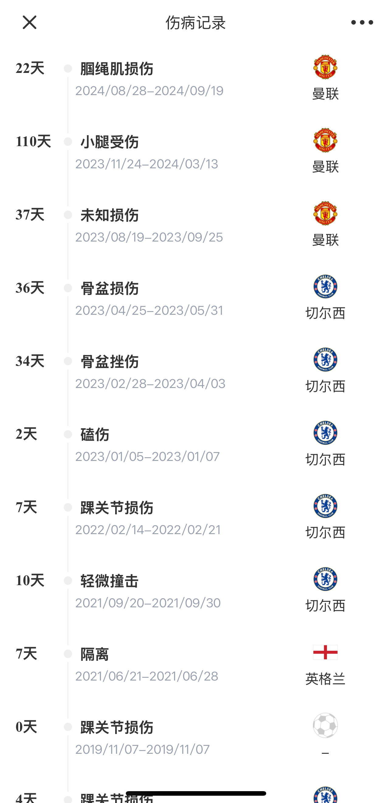 曼聯(lián)2-1曼城的比賽中,芒特首發(fā)出戰(zhàn),第13分鐘傷退。2023年夏窗,曼聯(lián)以6420萬歐元的轉會費從切爾西簽下芒特。加盟曼聯(lián)1年半,芒特只為曼聯(lián)出場32次打進1球助攻1次,根據(jù)傷病統(tǒng)計,芒特加盟曼聯(lián)之后已經(jīng)遭遇4次傷病,缺席比賽超過30場!